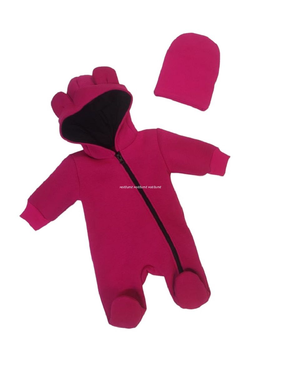 "МоёДитё" комплект: комбинезон + шапочка КС161 малиновый "Магнолия"