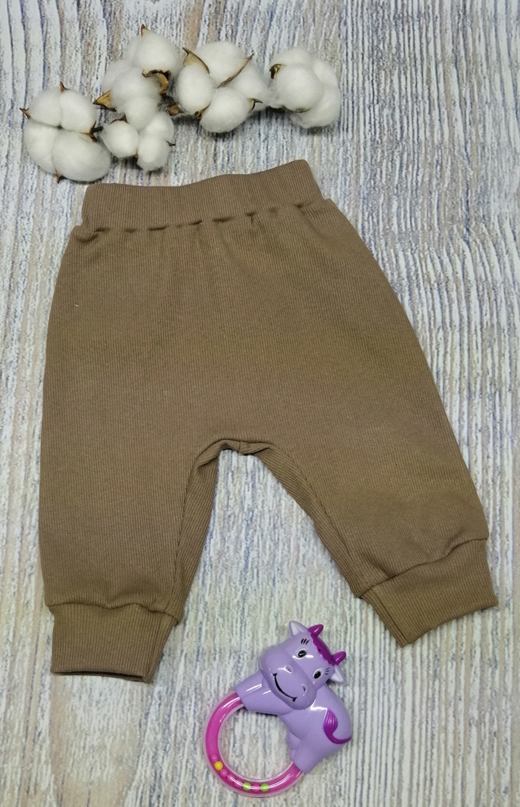 1. Штанишек на широком поясе с резинкой, снизу на манжетах.