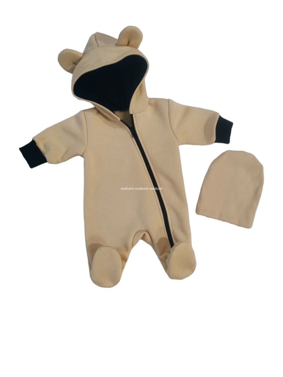 "МоёДитё" комплект: комбинезон + шапочка КС161 бежевый "Магнолия"